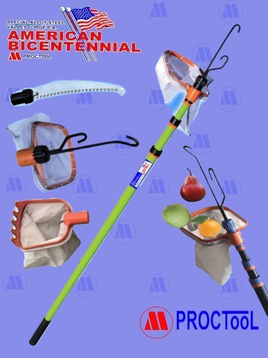 FRUIT HARVESTER REPLACEABLE HEAD (3 HEADS) TELESCOPIC FIBERGLASS HANDLE