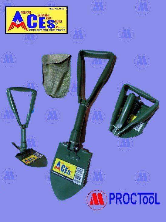MULTI-PURPOSE FOLDING SHOVEL WITH POUNCH